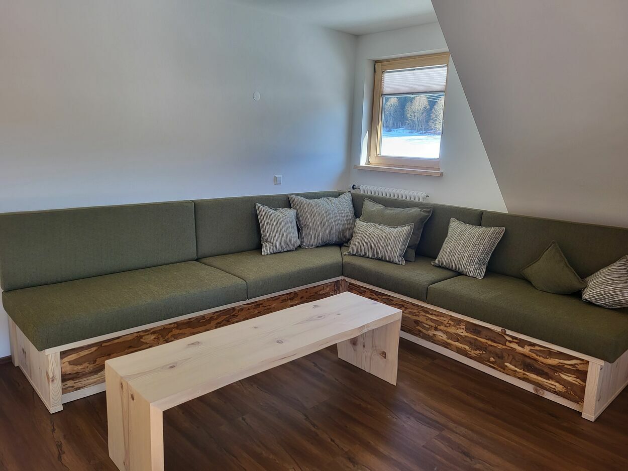 Auf 105 m² Wohnfläche bietet unsere liebevoll und freundlich eingerichtete Ferienwohnung Platz für insgesamt 5 Personen. Vom Schreiner aus der Region wurden die Möbel aus eigenem Tannenholz angefertigt.